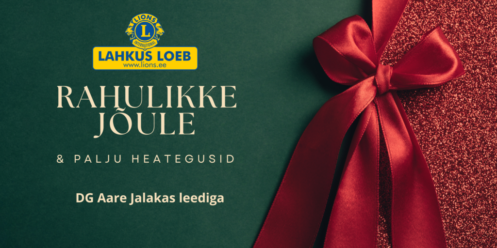 Head lionid, soovin, et need pühad tooksid Teie kodudesse rahu ja südamesse vaikset rõõmu, aega olla koos lähedastega ning jõudu uueks aastaks. Olgu uuel aastal tervist, ühtehoidmist ja tahet jätkata headuse jagamist!